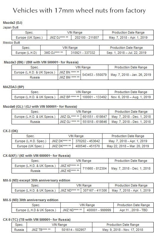 Set antifurt roti 17mm - Mazda